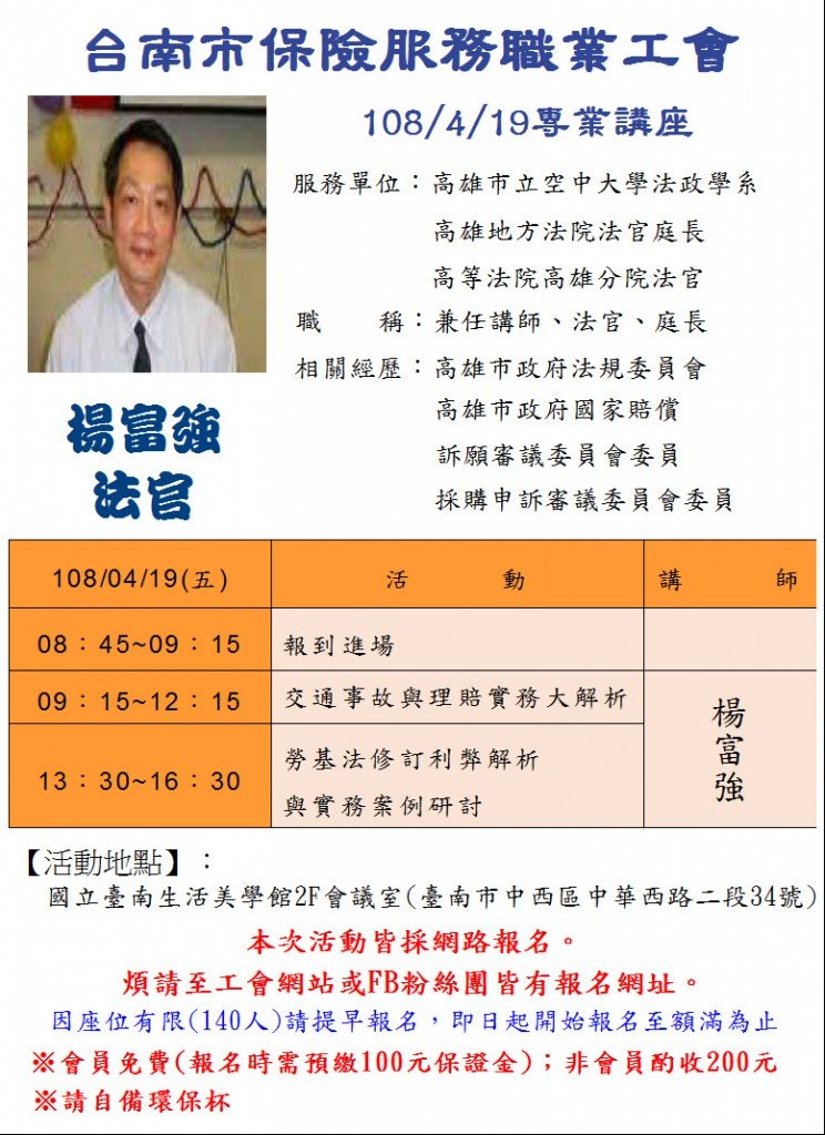 107年度勞工教育講座(高雄場)即日起開始報名囉~~