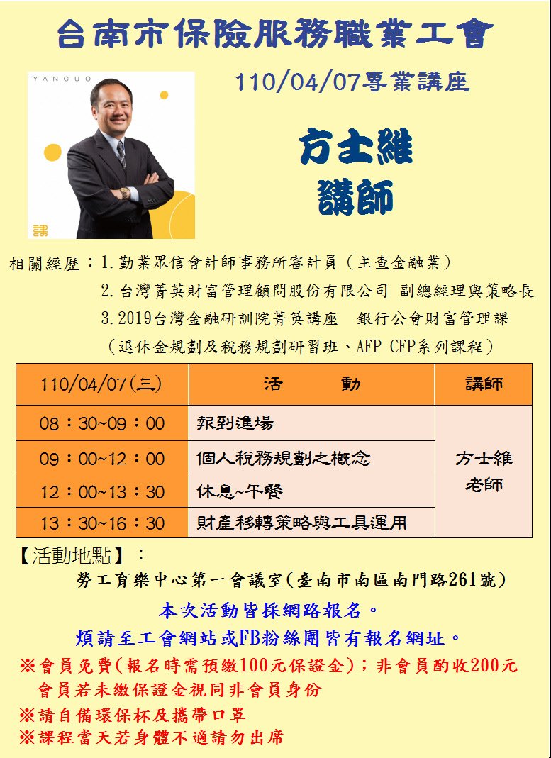親愛的工會夥伴您好:本會訂於110/04/07辦理【110年度勞工教育講座... 觀看詳細