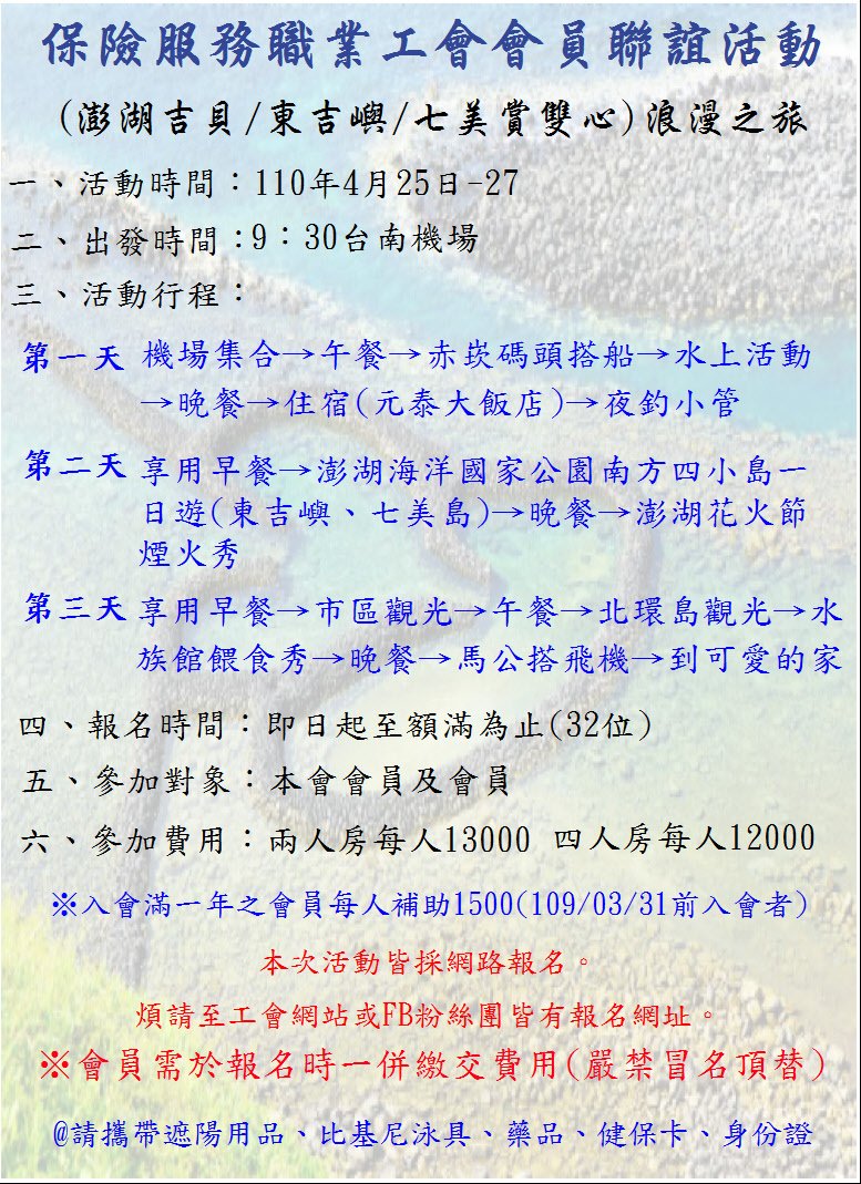 親愛的工會夥伴您好:本會訂於110/... 觀看詳細